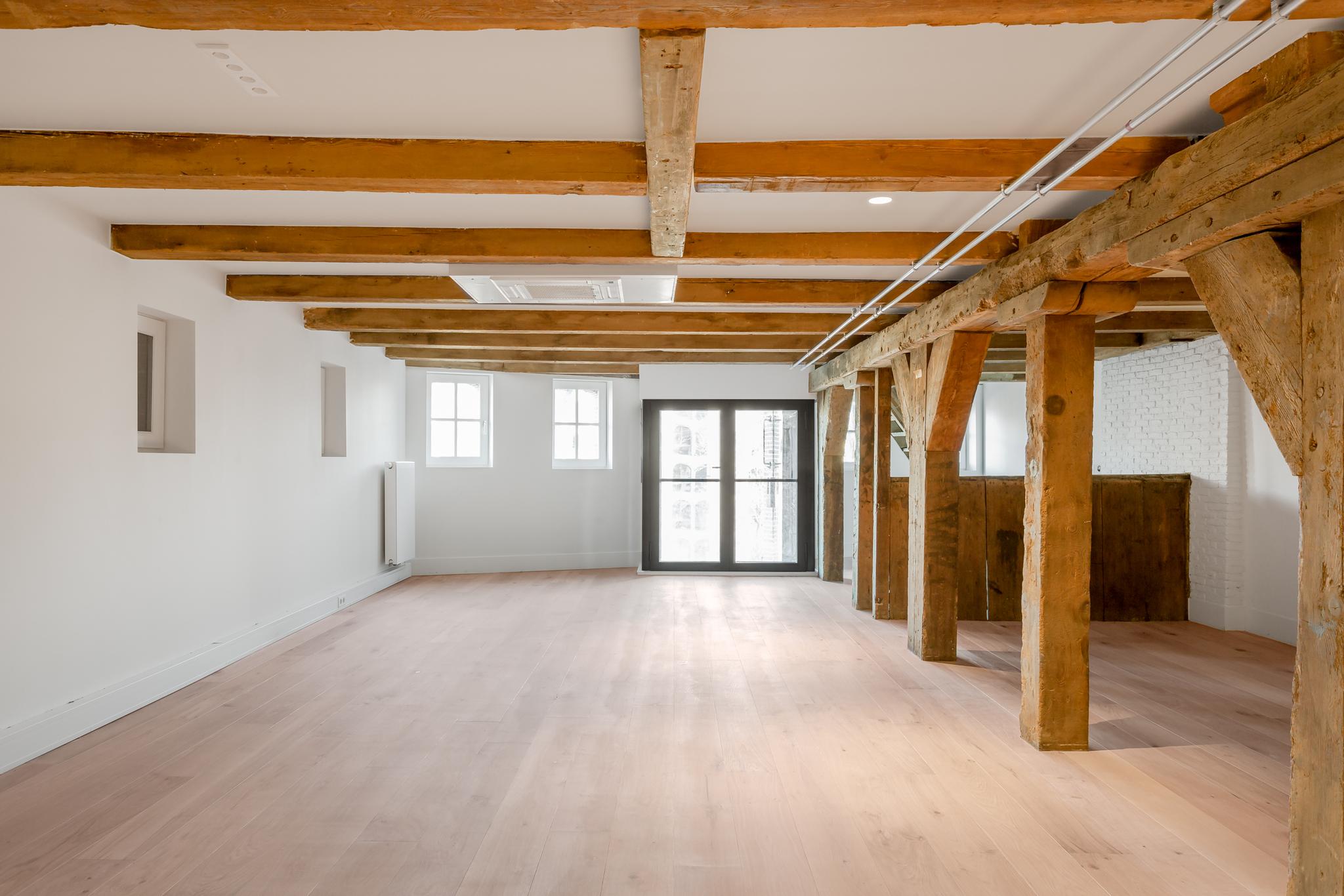 Een kantoorruimte op de derde verdieping van het voormalige pakhuis “Bontekoe”.