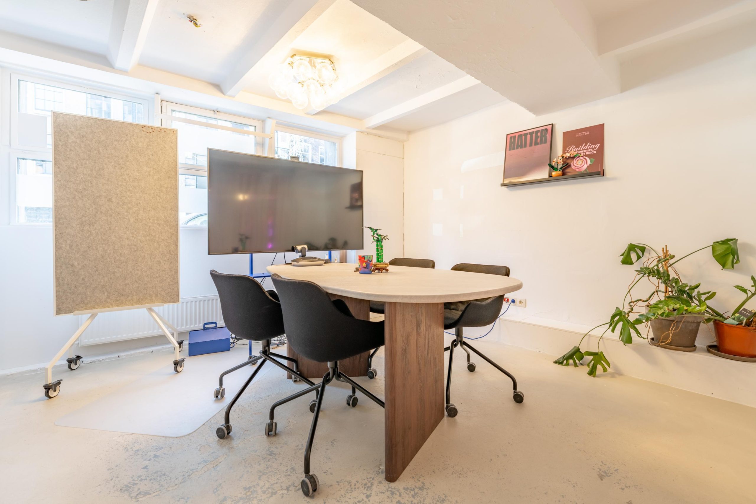 De unit heeft een eigen pantry en twee toiletten, op de begane grond een aparte vergaderkamer en op de eerste verdieping twee ruime en lichte kantoorkamers.