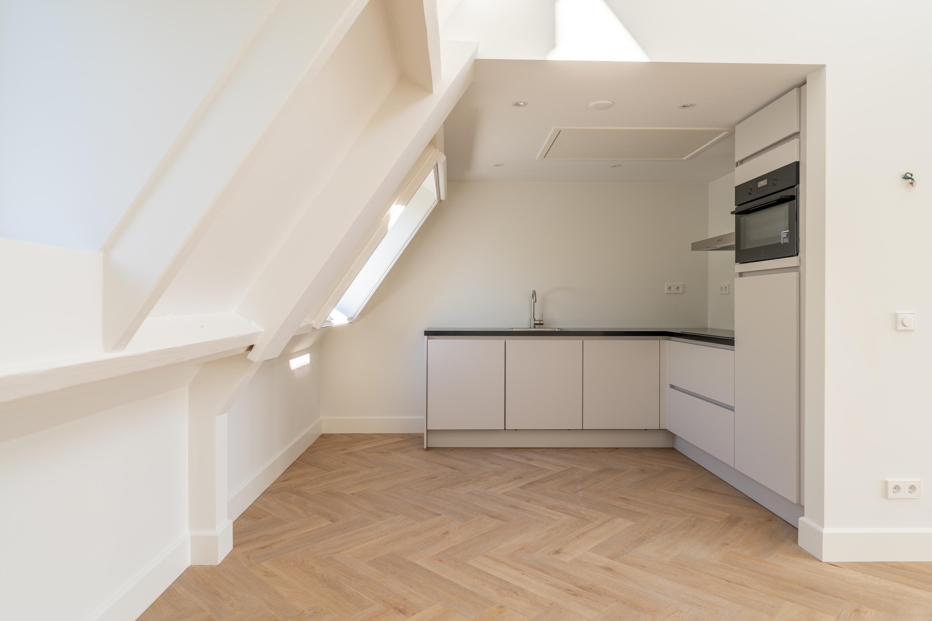 Op de vierde verdieping vind je op de overloop een separaat toilet. Vervolgens loop je door naar de ruime woonkamer met aansluitend de moderne, luxe keuken aan de voorzijde. Aan de achterzijde zorgen grote ramen voor veel lichtinval en heb je toegang tot het ruime balkon, waar je heerlijk van de zon kunt genieten.
